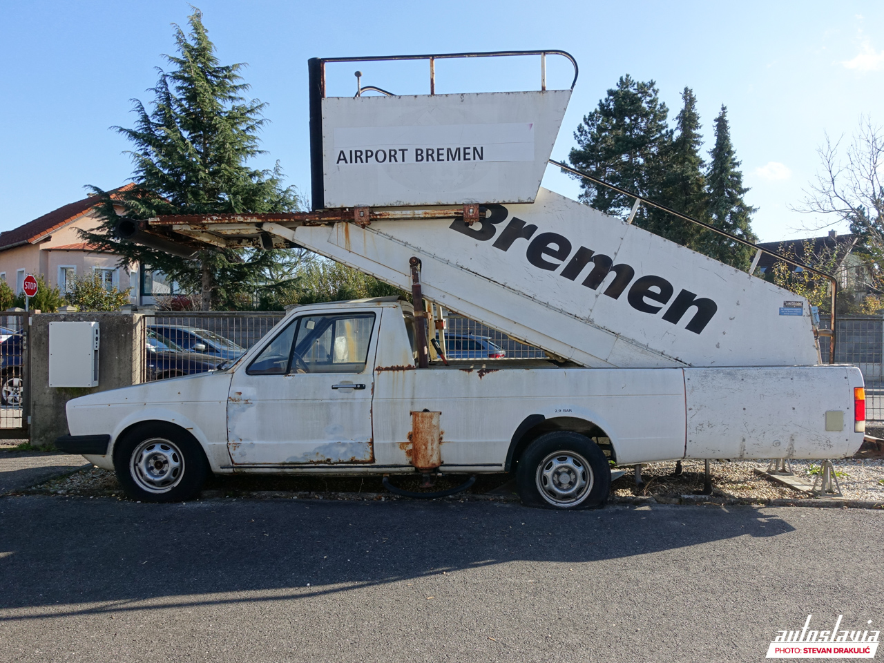Adresa muzeja je: Wiesenerstrasse 3, Stockerau. Iako se do njega relativno lako dolazi, prosto ga je nemoguće promaašiti, budući da su ispred ulaza izložena dva Caddy-a sa nadogradnjom stepeništa za ulaz u avion, donacija aerodruma u Bremenu. Uz njih se nalazi produženi Golf 1, Golf 2 prerađen u vozilo šlep službe, policijski Golf 2, te Golf 3 kabriolet koji je pretvoren u baštu.