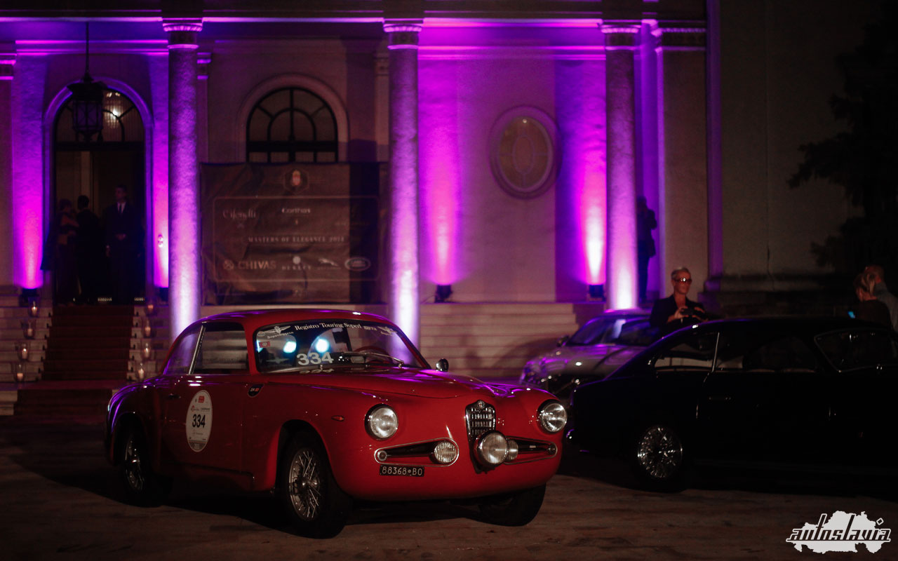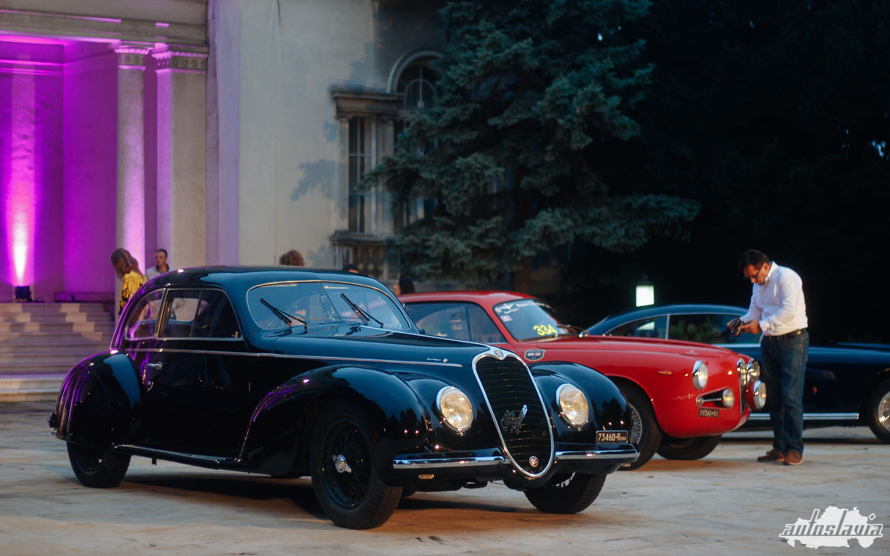 Na kraju dugačkog gustog drvoreda, pred stepenicama Belog dvora, čekali su nas oni, u malo izmenjenom sastavu. Iskreno, nismo imali razlog da se bunimo — umesto najavljenog Lamborghinija 400GT, dočekao nas je Ferrari 212 Inter sa Ghia karoserijom, a grb Touring Superleggere branile su Alfa Romeo 6C 2500 Touring i Alfa Romeo 1900 C SS sa italijanske i predivni Aston Martin DB4 sa engleske strane. Uz glavne zvezde, nenametljivo su stajala još dva gosta, Porsche 356 SC i Lancia Delta Integrale u Martini bojama. Poput početka našeg druženja, i prvi rođendan je zaista bio obeležen fantastičnim automobilima!