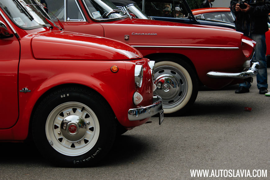 Na kraju dugačkog gustog drvoreda, pred stepenicama Belog dvora, čekali su nas oni, u malo izmenjenom sastavu. Iskreno, nismo imali razlog da se bunimo — umesto najavljenog Lamborghinija 400GT, dočekao nas je Ferrari 212 Inter sa Ghia karoserijom, a grb Touring Superleggere branile su Alfa Romeo 6C 2500 Touring i Alfa Romeo 1900 C SS sa italijanske i predivni Aston Martin DB4 sa engleske strane. Uz glavne zvezde, nenametljivo su stajala još dva gosta, Porsche 356 SC i Lancia Delta Integrale u Martini bojama. Poput početka našeg druženja, i prvi rođendan je zaista bio obeležen fantastičnim automobilima!